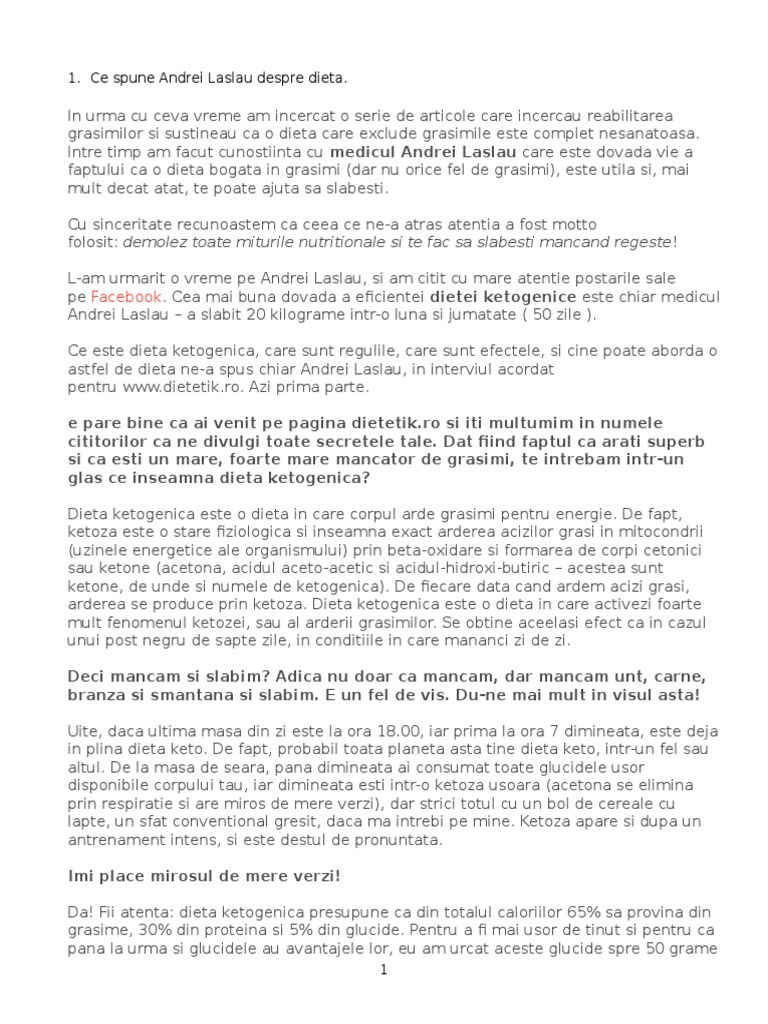 Andrei laslau @drandreilaslau 24 дек. Incercati la dr andrei laslau, poate va recomanda el ceva. Medicul andrei laslău avea 110 kilograme și în doar 45 de zile a reușit să ajungă la 90 de kilograme cu ajutorul dietei ketogenice. Am pornit de la 80 de kg si am ajuns la 61 de kg mancand sanatos. 3 salate dietetice pe care le poti manca inainte de culcare.
