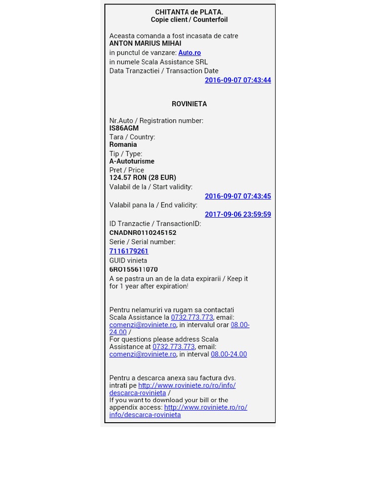 In colaborare cu roviniete lansez un nou concurs pentru bloggeri, ale carui premii sunt un laptop acer emachines, un sistem de navigatie mio m300 romania si o rovinieta de 12 luni pentru un autoturism! Pentru a achita taxa trebuie sa trimiti un sms la numarul 7500 cu numarul de. Obligarea la plata rovinietei pe un an intreg odata cu amenda pentru lipsa acesteia este un abuz, a afirmat, vineri, avocatul poporului, gheorghe iancu.