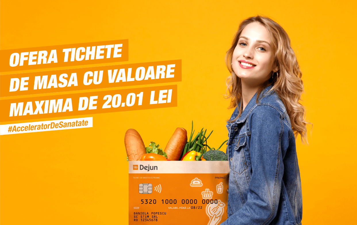 Cardul de masa up dejun este versiunea moderna si simplificata a tichetului de masa, un instrument de plata rapid si sigur prin care iti motivezi angajatii si in baza legii 165/2018, poti alimenta cardurile salariatilor in fiecare luna cu contravaloarea tichetelor de masa pe fiecare zi lucrata, inclusiv pentru. Tichetele de masa se modernizeaza: Tichetele de masă, schimbare uriașă în 2020!